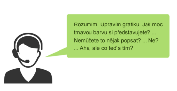 - Osobní setkání můžete využít i jinak než dotahováním grafiky. Je to ideální čas zeptat se klienta, jestli jde vše dle jeho představ a nastínit další průběh.
