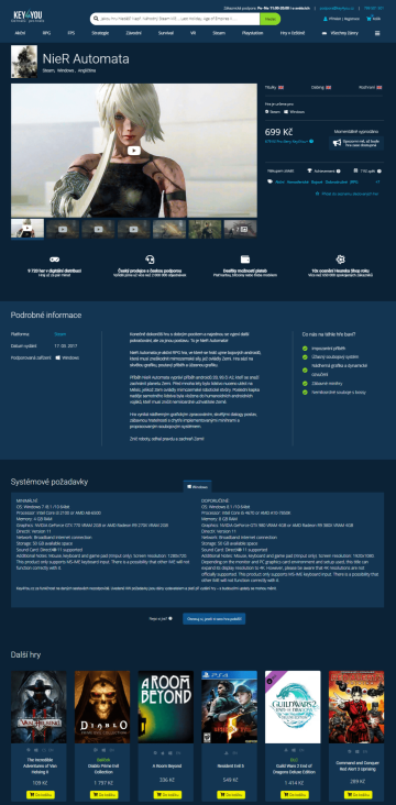 Na Key4you jsme dlouhou dobu také využívali záložky. Během uživatelského testování jsme zjistili, že značná část lidí okamžitě na detailu produktu hledá systémové požadavky. Chtějí vědět, jestli vůbec hru na svém PC rozjedou.