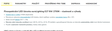 Hlavní záložka "Popis" je viditelná a zobrazuje popis produktu. Ostatní obsahy jsou skryté. Zobrazí se až na kliknutí na danou záložku. Jde o klasické záložkové zobrazení, jako máte např. ve vašem prohlížeči.