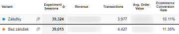 Původní varianta se záložkami měla konverzní poměr 10,11 % versus 11,35 %, když záložky nepoužíváme a zobrazujeme všechen obsah rovnou na stránce.